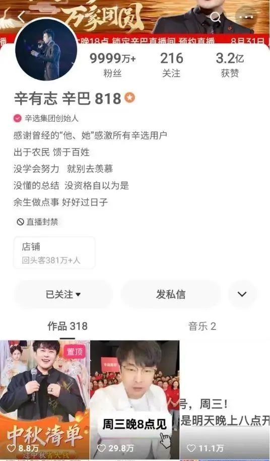 记者留意到,辛有志的账号主页显示“直播封禁”。对封禁的原因,辛有志的公司辛选方面暂无回复。记者从辛选了解到,尽管直播间遭封禁,但赔付依然会进行。11日晚,已有不少网友晒出截图,称收到了相关款项。