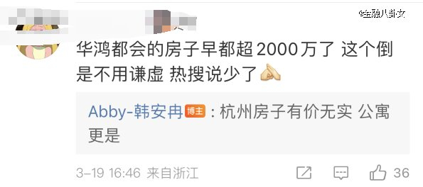 虽然韩安冉本人表示,房子没有2000万,只是付了首付。但有知情的网友在评论区爆料了小区名和价格,直言她“不用谦虚”。