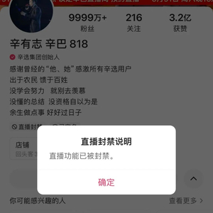 9999万+粉丝主播,直播间被封禁!
