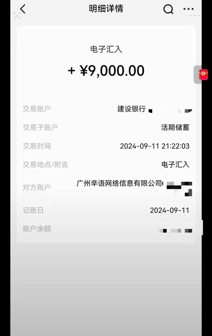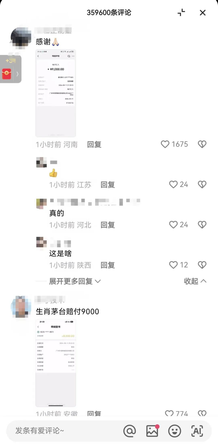 记者注意到,11日晚间,已有IP为山东、广东、河南等地的不少网友在辛巴账号视频留言区晒出截图,称已经收到相关款项,交易时间为当晚9点多,交易金额9000元,付款方为广州辛语网络信息有限公司,天眼查app显示,该公司是辛选集团成员。