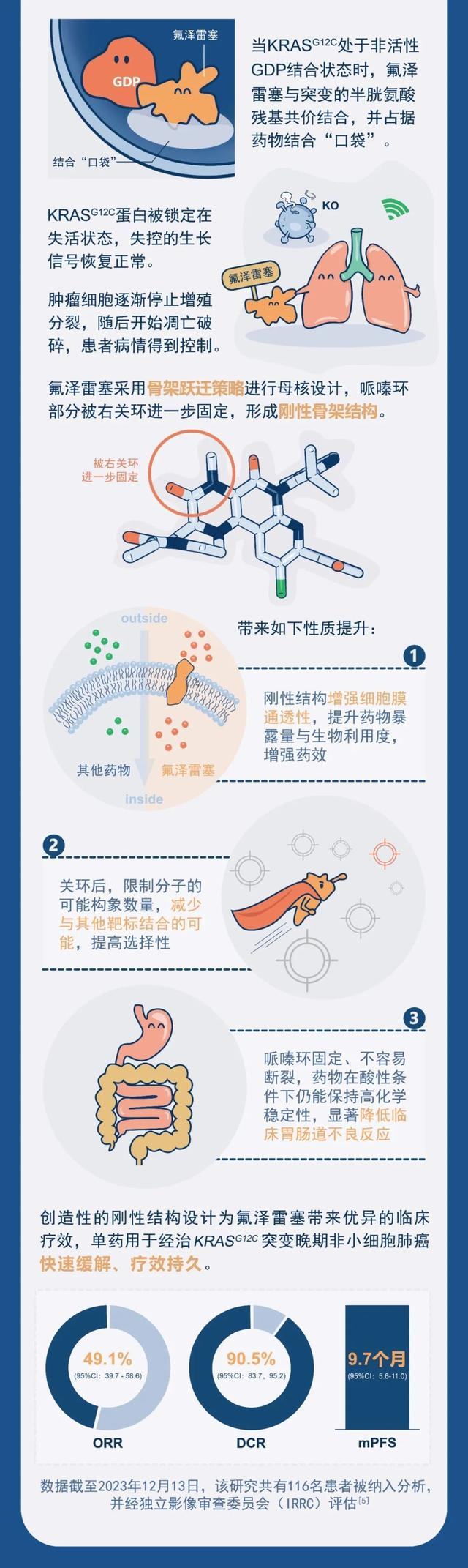 近日,信达生物的KRAS G12C抑制剂——达伯特®(氟泽雷塞片)获中国国家药品监督管理局药品审评中心批准上市,适应症为至少接受过一种系统性治疗的KRAS G12C突变型晚期非小细胞肺癌成人患者。达伯特是中国首个获批的KRAS G12C抑制剂,它的获批填补了40年国内KRAS G12C突变靶向治疗的空白,为患者带来了精准治疗的全新选择。