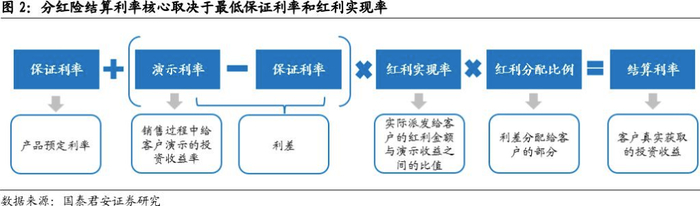 “收益主要来源于利差。”据徐昱琛介绍,保险公司在销售分红型保险产品时要有演示利率,根据监管要求演示利率最高不超过4.5%。徐昱琛进一步指出,“预定利率部分为2.5%,那么超额的部分就是2.0%,保单持有人至少能分配2.0%的70%,也就是1.4%。”分红型保险的总收益率,取决于分红的实现率。