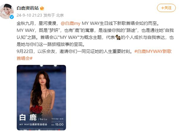 日前,演员白鹿上线首张数字音乐专辑,获得了粉丝的高度关注。9月10日,白鹿新歌首唱会官宣,白鹿将在9月22日生日当天,于上海船厂剧院携自己首张音乐专辑与粉丝们见面,并公开了演唱会门票的获取方式,演唱会的相关规则引发粉丝不满,被不少网友吐槽“首唱会变成韭菜会”。9月11日,演唱会的主办方欢娱影视致歉宣布调整门票获取规则。