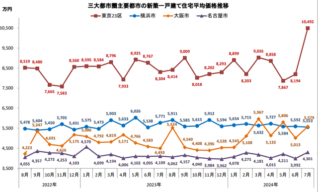 东京都市圈新建独栋住宅价格结束两个月的连续上涨