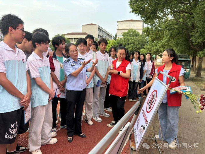 9月10日,湖北省襄阳市宜城市鄢城街道关工委联合鄢城派出所、鄢城社区戒毒康复中心共同在宜城市第三高级中学开展“开学第一课•青春不‘毒’行”毒品预防教育进校园活动。