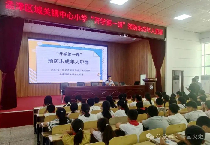 9月9日,河南省洛阳市公安局孟津分局关工委组织民警走进城关镇中心小学敲响法治“预备铃”,讲授“开学第一课”。