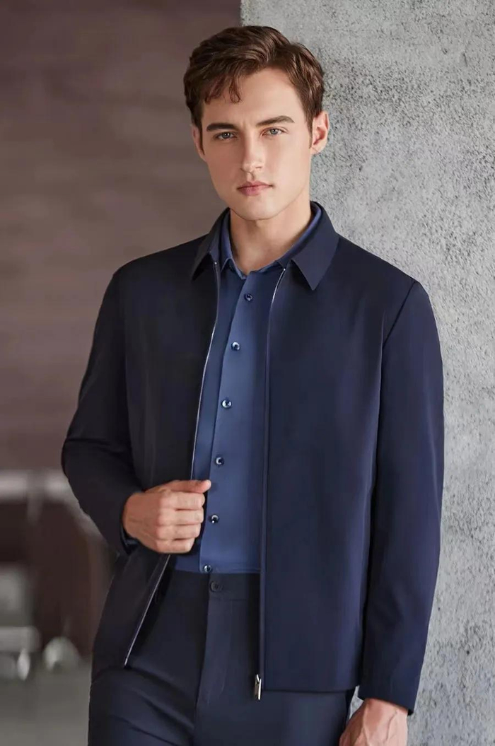都市厅局风,款式经典大气,高温定型衣领精致优雅,上身成熟稳重,尽显男士魅力。