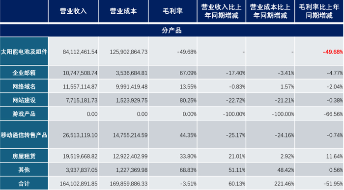(2)从公司中报来看,今年上半年光伏电池的毛利率只有-49.16%。