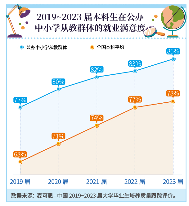 从教大学生就业幸福感强,公办中小学任教85%对工作满意
