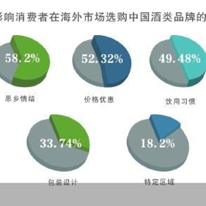 据调研数据,驱使消费者在海外市场购买中国酒类因素中,思乡情结、价格优惠、饮用习惯以及国外限定款成为主要因素,占比分别为58.2%、52.32%、49.48%以及46.16%。此外,香型喜好、包装设计以及特定区域也成为影响消费者在海外选购中国酒类次要因素,分别占比41.71%、33.74%以及18.2%。