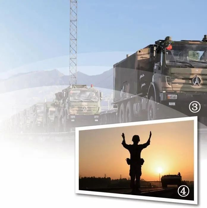 图③:南部战区某调度中心所属军代室组织任务部队开展铁路运输投送训练。图④:南部战区某调度中心所属军代室军代表引导部队装备开上平板列车。