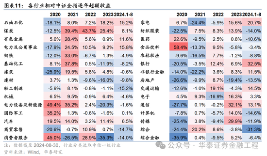 A股存在鲜明的行业轮动,行业中性或能分散行业风险,降低行业超配或低配带来的波动。观察过去五年各行业相对于中证全指的超额收益,任意单一行业都无法稳定的领跑市场,单行业收益波动较大,市场行业主线切换迅速。