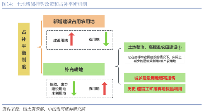 但自2021年全面脱贫攻坚完成之后,中央对于全国土地要素的统筹调剂力度有所减弱,且伴随房地产市场和土地财政的回落,各地对于城镇建设用地指标的需求有所降低。我们认为未来伴随五年行动计划的实施,未来核心经济圈外扩仍需加大对优势地区的用地指标保障,包括进一步建立全国统一的土地要素交易市场,加大农业用地指标和城市建设用地指标的跨区域交易,以及对现有城镇闲置建设用地的存量盘活。