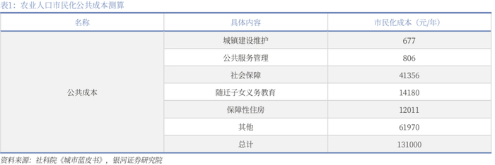 从投资需求看,为了支持农业转移人口市民化,在交通、供水供电等基础设施,住房、教育、医疗等公共服务领域的会产生新增的投资需求。根据社科院的测算,2012年我国农民工市民化的人均公共成本是13.1万元,主要包括社保、随迁子女教育、保障性住房。由于数据为2012年的数据,因此目前的农业人口市民化成本会更高。如果上述公共成本均为新增投资需求,则城镇化率每提升1个百分点,新增的公共投资需求则将达到万亿以上。国家发改委也指出我国城镇化率每提高1个百分点,可以拉动万亿规模的新增投资需求。