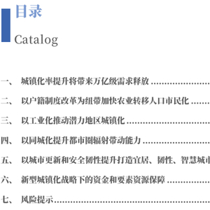 · 新一轮城镇化将带来万亿级的需求释放:城镇化率的提升通过提高农业转移人口的绝对收入、增加收入稳定性以及减轻对社会保障的担忧可以提升其在食品烟酒、居住、交通和通信、教育文化和娱乐领域等方面的消费需求。同时为保障高质量的城镇化,需要同步加大对道路、供水供电等基础设施,教育、医疗住房等领域的投资,产生新增投资需求。据估算,两种需求的规模均将达到约万亿。
