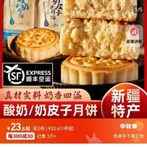 为迎合市场口味,今年金派利尔公司在以往奶皮子月饼的基础上,还推出了酸奶月饼,添加了蔓越莓,更加酸甜可口。目前在网络销售渠道,新疆奶皮子月饼和酸奶月饼一起销售,同样是4粒售价19.9元。