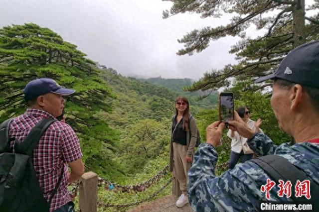 9月12日,第十四届安徽国际文化旅游节——境外旅行商黄山市考察踩线活动走进黄山风景区。图为境外旅行商在拍照留念。中新社记者 张强 摄