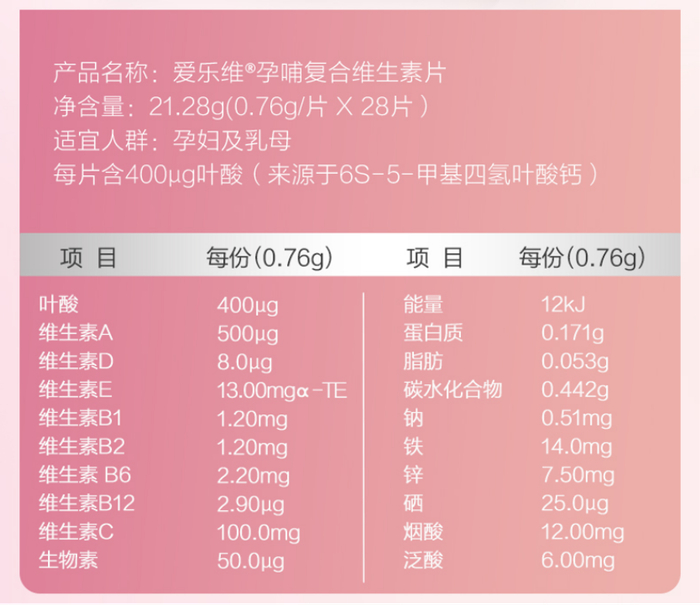 这款除了是活性叶酸外,也是一款复合的维生素片,营养更全面了~