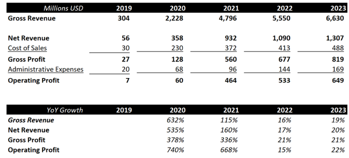 OnlyFans,2016年才诞生的年轻公司。前几年表现中规中矩,但从2020年开始腾飞。