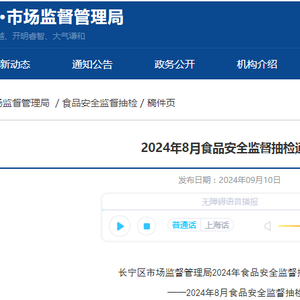 上海市长宁区市场监督管理局2024年食品安全监督抽检情况通报