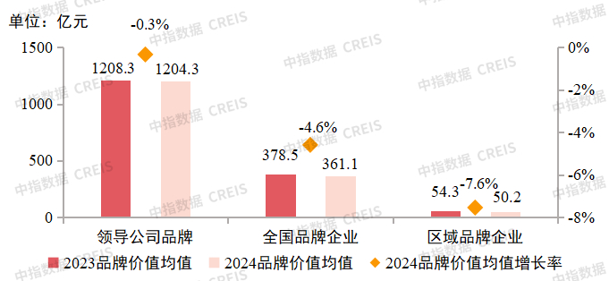 图:2024领导公司、全国和区域品牌企业品牌价值均值及其变化