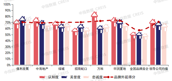 行业调整期,消费者更加青睐于购买满意度高的企业的产品,因此,品牌企业更加注重夯实品牌三度。品牌企业通过加强品牌三度和满意度建设,成立客研委员会和客研中心,聚焦客群需求,升级产品体系;充分利用客群基础,借助在深耕市场上积累起来的认知度和美誉度,不断完善服务体系建设,提升业主满意度,增强客户黏性提升品牌忠诚度。2024中国房地产品牌价值研究中,研究组以品牌企业的“品牌三度”为维度进行了问卷调查,结果显示:中国房地产行业领导公司品牌认知度、美誉度和忠诚度均值分别为76.21%、72.22%和69.64%,整体较上一年有所提升,整体好于行业水平,品牌聚集效应明显,行业领导作用始终彰显。全国品牌企业的认知度、美誉度和忠诚度均值分别为53.86%、54.32%和52.34%,较上一年有不同程度下降。