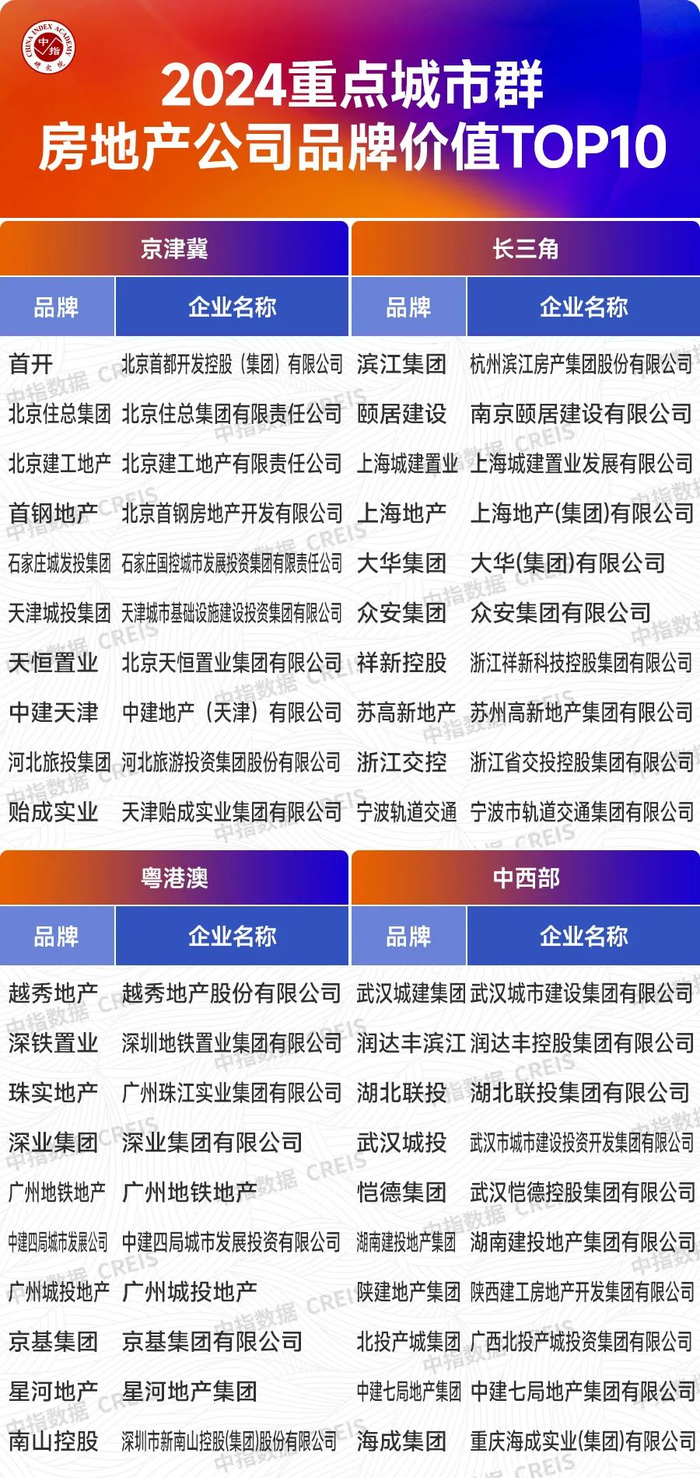 2024上半年,房地产政策持续调整优化,房地产市场在发生积极变化。一季度新房市场整体延续调整态势,二季度新房销售面积同比降幅持续收窄,特别是改善型需求支撑更加强劲。在此背景下,购房者置业愈发理性,也更加看重房企品牌、产品力、交付力等,因此,品牌房企坚持稳健运营的同时,不断打磨产品,升级产品线,提供符合市场需求的适销产品;坚持如期交付、品质交付,提升客户满意度。伴随着行业进入新的发展阶段,品牌企业积极探索新的发展模式,拓展代建、住房租赁和商业轻资产运营等,掌握市场主导权,不断夯实品牌价值。品牌凝聚信任,塑造企业良好形象;品牌吸聚优质资源,提升企业竞争力。新征程下,企业秉持品牌建设的长期主义,稳住基本盘,守住品牌价值,在变化的市场中保持一席之地。