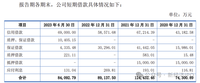 截至报告期末,超颖电子短期借款余额、长期借款余额分别为 84092.79万元、 98189.91 万元,合计负债高达18.2亿元。值得注意的是,超颖电子2021年的短期借款高达12.44亿元,2022年降至8.9亿元,但同期长期借款从2020年的6000万元猛增至2023年末的9.8亿元。