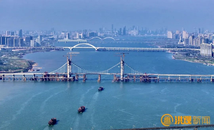 站在八一大桥上眺望,位于滕王阁景区北园西北侧赣江流域的南昌港客运码头趸船更新项目正在施工,建成后将作为赣江客运游船停靠点使用。届时,南昌港岸线将由现在的160米增加到400米,缓解客流高峰期人流压力,进一步提升游客的舒适度。