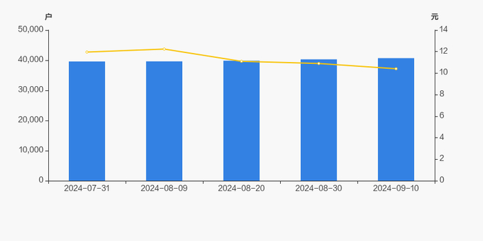 2024年7月31日至今,公司股东户数有所增长,区间涨幅为2.80%。2024年7月31日至2024年9月10日区间股价下降12.96%。