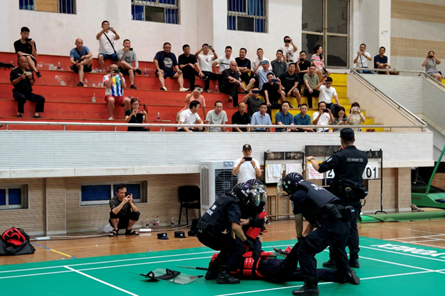 活动中,民警针对校园突发事件的类型和特点,对参训人员进行反恐防暴知识及应急处置流程现场教学,对盾牌、抓捕钢叉等装备的使用技巧、技防技能进行示范。参训人员观摩并进行作战训练,校园内的每一个角落都被纳入到了安全防控的范围内,无论是火灾、地震还是其他突发事件,都能够得到及时有效地处理,从而最大限度地保障师生的生命财产安全。