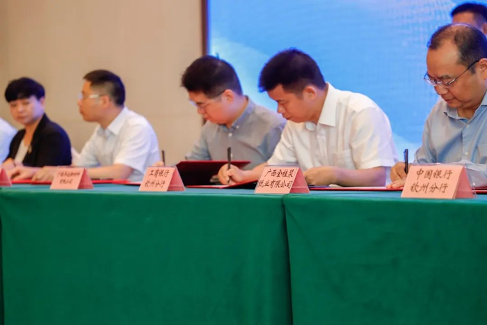 “服务新质生产力,做好科技金融大文章,是金融机构服务实体经济的重大责任,也是转型发展的内在所需”工商银行钦州分行负责人表示。现场签约仪式上,工商银行钦州分行等9家银行机构与22家企业签订了合作意向协议,签约意向金额100.35亿元。会后,多家参会企业与银行保险机构在金融产品服务展示区开展现场咨询和融资对接。各银行保险机构工作人员热情介绍制造业、科技特色金融服务产品,并量身提供融资建议,为新质生产力发展打通“堵点”。