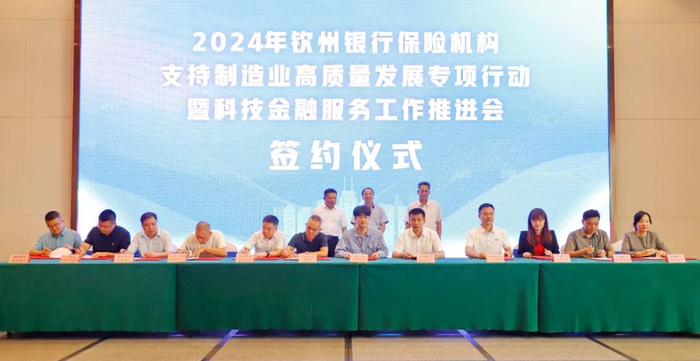 为深入贯彻党的二十大、二十届三中全会精神和中央金融工作会议工作部署,推动更多金融资源支持加快构建现代化产业体系,助力新质生产力发展,9月12日,国家金融监督管理总局钦州监管分局联合钦州市工业和信息化局、钦州市科学技术局、钦州市市场监督管理局共同召开2024年钦州银行保险机构支持制造业高质量发展专项行动暨科技金融服务工作推进会。全市25家银行保险机构和35家先进制造业企业、高新技术企业、“专精特新”中小企业参加会议并现场洽谈签约。