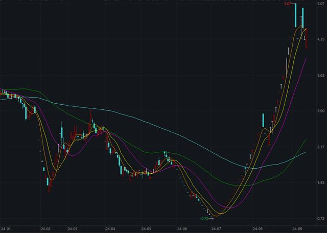 *ST景峰此轮的股价暴涨与该公司正在进行的预重整事项有关。尽管直到8月下旬才最终确定石药控股集团有限公司(下称 石药集团 ,01093.HK)为*ST景峰的重整投资人,但其实二者的合作早在7月初法院决定启动预重整程序时就已开始,该公司股价也由此开启了一波股价上涨行情。