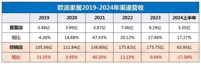 分渠道看,欧派零售经销渠道营收同比下滑 23%,对其营业收入的影响尤为明显。其中经销店营收较2023上半年减少17.58%。