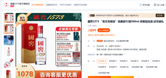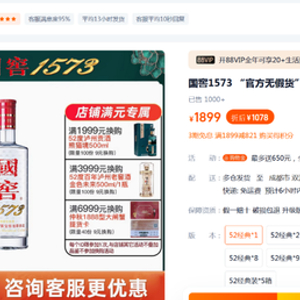 酒企官方旗舰店/直营店:多数酒企基本都开通了官方旗舰店,官方旗舰店一般供展示商品,树立价格标杆,促销政策很少。比如在国窖1573官方旗舰店,52度经典装的国窖1573产品,折前1899元/瓶,折后1078元/瓶(到手价),而在淘宝其他店铺,价格都在一千以下,而且买两瓶装会更便宜。官方旗舰店的显著标识就是“官方无假货”,买的是放心。