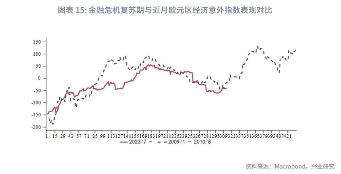 根据欧央行的银行借款调查(Bank Lending Survey,BLS),针对欧元区两大主流贷款——非金融企业贷款和购房贷款,我们以存量占比为权重分别对需求、信贷标准扩散指数加权,后将两者相减,构造欧元区银行贷款供需综合指数。该指标显示,第三季度信贷总体状况有望转优,为增长提供支撑。不过,由于调查类指标往往带有一定主观性,银行对需求的评估可能倾向于偏乐观。