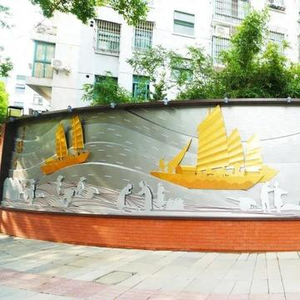 红砖围墙上一幅长15米,高2.3米的《盛世华章 漕达四方》浮雕画引人注目,巨型装饰浮雕以航运漕船、繁忙市井、曲水漕河勾勒一幅漕运鼎盛画面,全面展现华漕漕运动脉的文化底蕴和繁华景象。