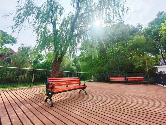 从滨河绿地眺望,还能看到双鹤浦对岸以“公园+”理念实施提升的诸翟公园。此次提升,将公园围墙全部打开,实现公园与周边社区、公共设施的无界融合,以“公园+文化”拓展已有公园功能。改造深入公园内部,把公园沿河的木围栏换成观赏性和安全性更高的玻璃围栏,通过玻璃形成的天然“画框”,两岸居民都可以欣赏到掩映在大片绿色中的美景。