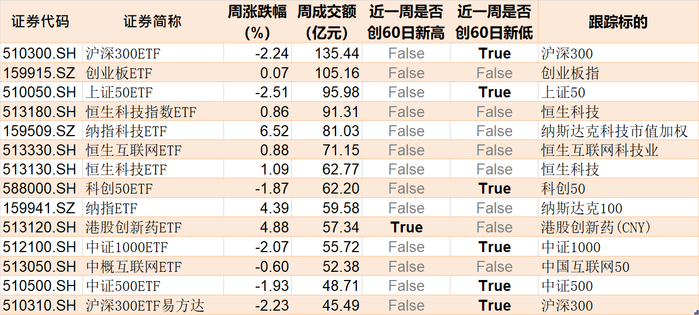 多只ETF本周创近60日新低