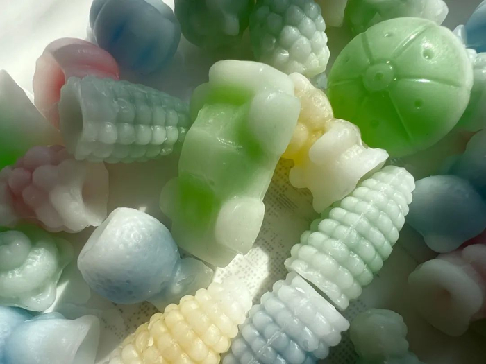 教育君注意到,蜡瓶糖是声称以食用蜡作容器,做成动物、花朵、水果、卡通人物等造型,在里面填充果酱、巧克力等夹心的一种食品。一口咬下去,里面的夹心就会流淌出来,吸食完夹心后,可以继续咀嚼食用蜡外壳,随后把食用蜡外壳吐出。