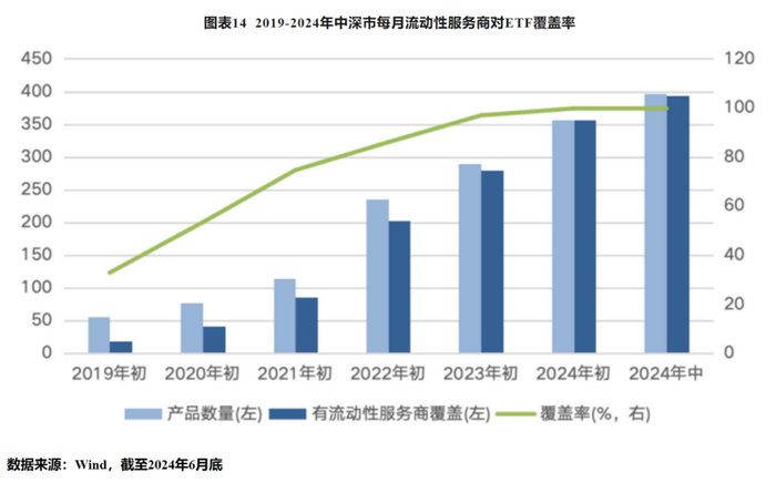 截至2024年6月,深交所主流动性服务商数量已经达到18家,覆盖产品达到273只,占深市ETF数量的69%。深交所表示,未来将通过不断完善相关规则和激励机制,鼓励更多的机构参与到ETF主流动性服务商的行列中。