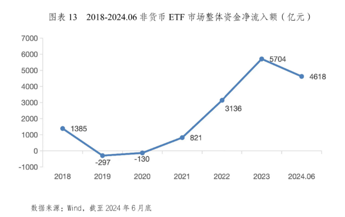 二是非货币ETF的今年上半年净流入额再攀新高,达去年全年的八成以上;