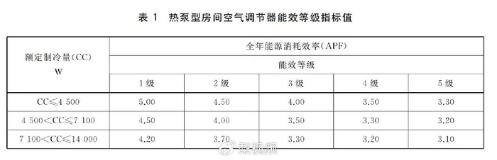 2020年7月起实施的GB 21455-2019《房间空气调节器能效限定值及能效等级》,将空调能效等级细分为5级。其中,五级能效空调作为市场准入品出现,能耗最高,虽然售价便宜但费电严重。该标准同时指出,自2022年1月1日起,热泵型房间空调器的全年能源消耗效率(APF)、单冷式制冷季节能源消耗效率(SEER)应大于等于能效3级指标值。
