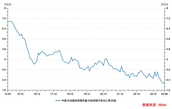 展望看,未贴现的表外票据余额已自历史高点的7万亿元降至目前的2万亿元左右,表外票据“池子”明显减少,这意味着未来票据融资难有较快增长。