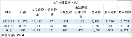 8月新增社融3.03万亿元,同比小幅减少981亿元,环比大幅多增2.26万亿元。