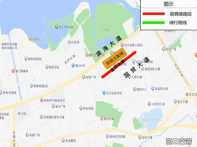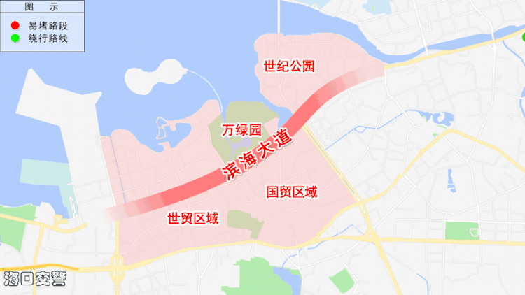 👉如滨海大道万绿园路段、世纪公园路段及周边道路(国贸区域、世贸区域)交通流量大,建议途经驾驶人绕行龙华路、大同路、海秀东路、海秀中路。