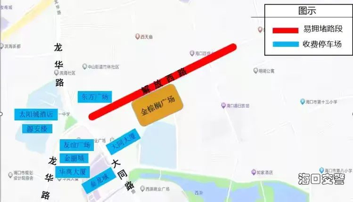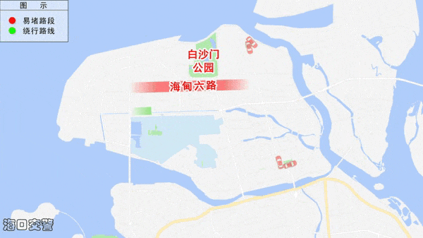 👉如海甸六路白沙门公园路段及周边道路交通流量大,建议途经车辆绕行海甸五路、和平大道、海达路、海彤路、碧海大道东沿线。