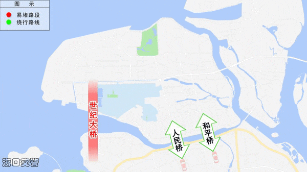 👉如世纪大桥交通流量大,途经车辆可绕行和平桥、人民桥进出海甸岛。