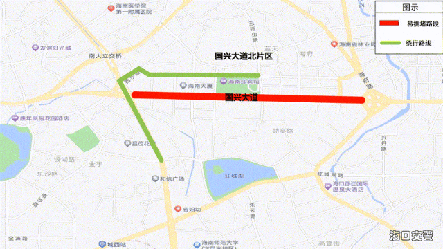 🚗 2、国兴大道南片区可绕行椰海大道→白驹大道前往海文高速。